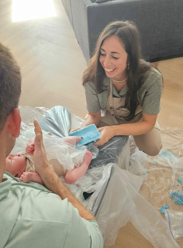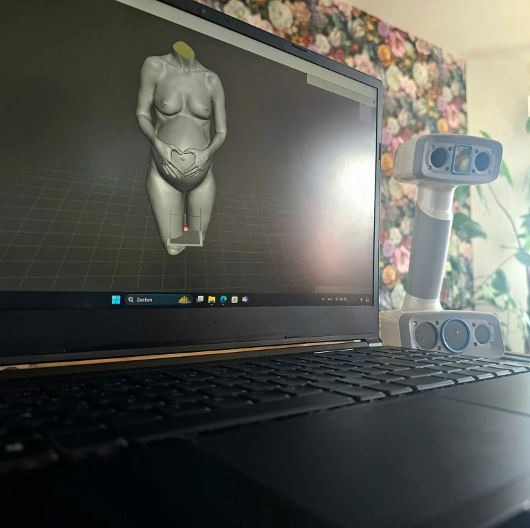 Afdrukprocedure: Afhankelijk van het product dat je wilt laten maken, wordt de afdrukprocedure uitgelegd. Dit kan variëren van het maken van een afdruk van een handje of voetje , een familieafdruk tot een afdruk van een zwangere buik. Dan gaan we aan de slag met het 3D scannen, een alginaat of een ander veilig materiaal om de afdruk te maken.