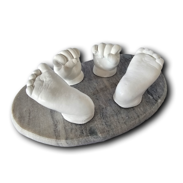 Het kan tevens zijn dat er bij de tekst van jouw gewenst product staat dat wij alginaatafdrukjes maken. Dit is net wat ingewikkelder, daarom vindt deze babycasting afspraak plaats op locatie of binnen een straal van 75 km aan huis, indien dit gewenst is (km-vergoeding 0.23 cent per km). Jouw kleintje drukken wij dan af in alginaat. Dit materiaal lijkt een beetje op drilpudding en is volledig huidveilig.sommige gevallen maken we een afspraak op locatie of in ons atelier, lees daarom eventjes goed wat er voor uitleg bij jouw gekozen product staat. Veel afdrukken kun je namelijk zelf maken, maar bij sommige gevallen maken wij de afdruk.