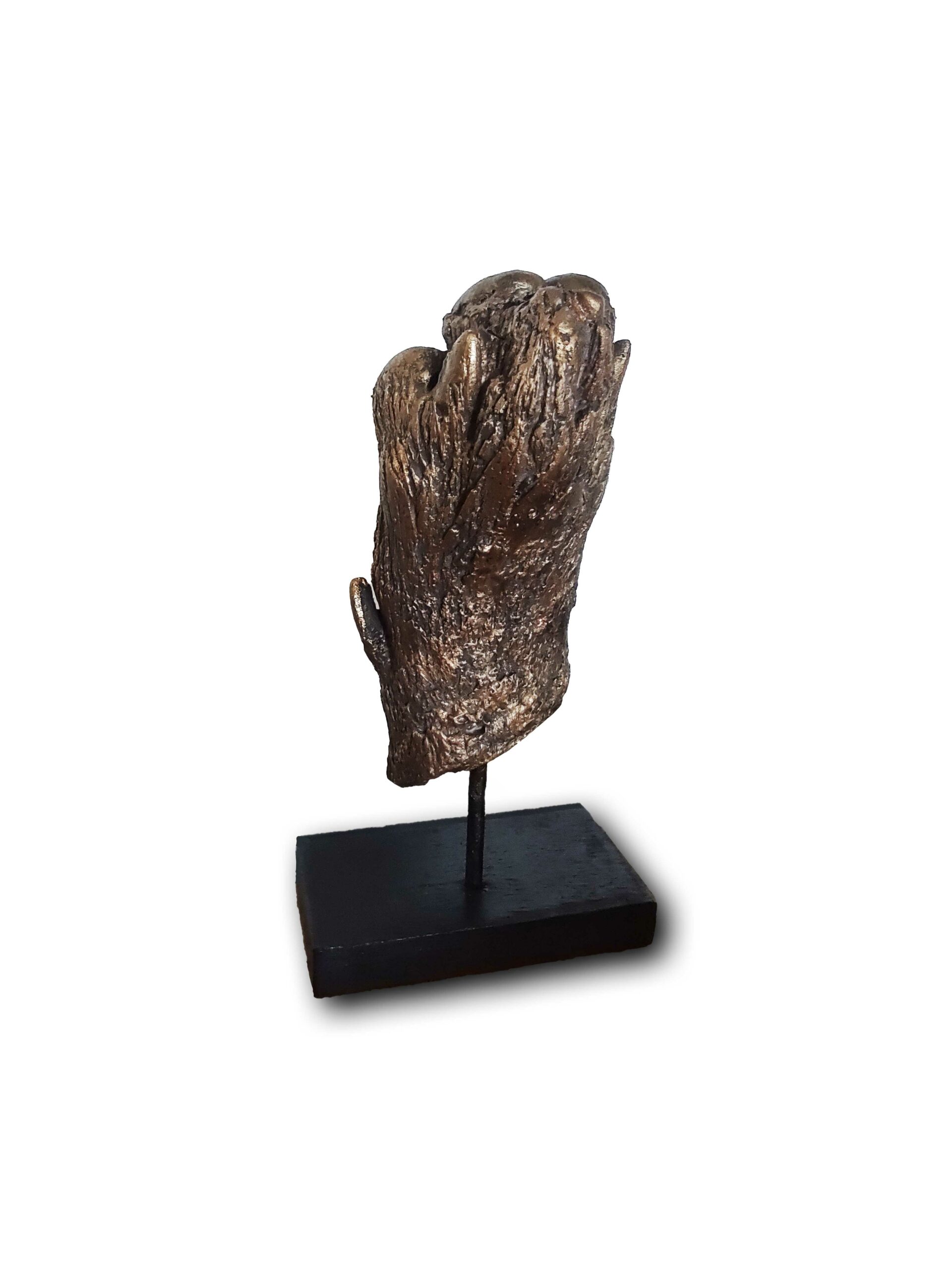 - Onze beeldjes van jouw afdrukjes zijn gemaakt van hoogwaardig brons en kunnen gepatineerd worden naar wens.