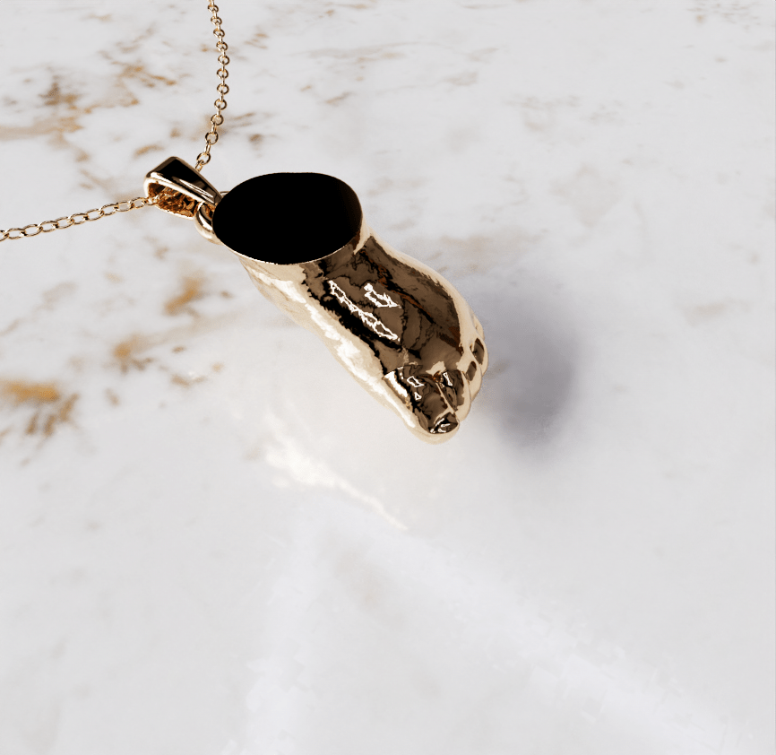 • Dit bijzondere sieraad kan alleen worden vervaardigd als u ons kunt bezoeken in ons atelier in Maastricht, of als u binnen een straal van 75 km woont en graag een afdruk op locatie wilt laten maken. In dat geval rekenen we een kleine kilometervergoeding van 0.23 cent per kilometer