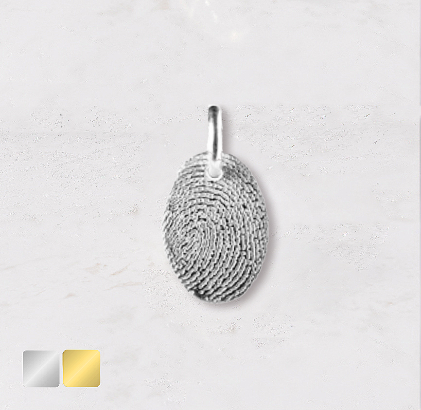 Draag een blijvende herinnering dichtbij met deze elegante ovale hanger, waarin een vingerafdruk met zorg wordt gegraveerd. De hanger is vervaardigd uit hoogwaardig 925 zilver en meet  13 x 1 mm of 18 x 1 mm.