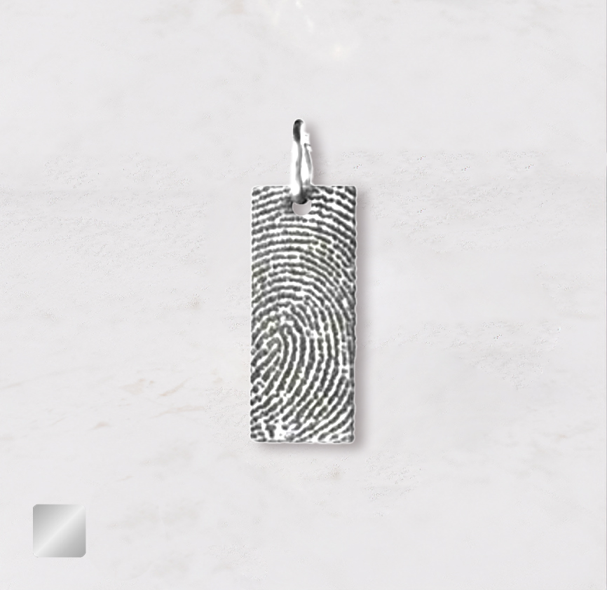 Een prachtig aandenken deze rechthoekige hanger. Een ware tastbare herinnering aan een geliefde. De bedel is stoer vormgegeven, wat zorgt voor een mooie, pure uitstraling.