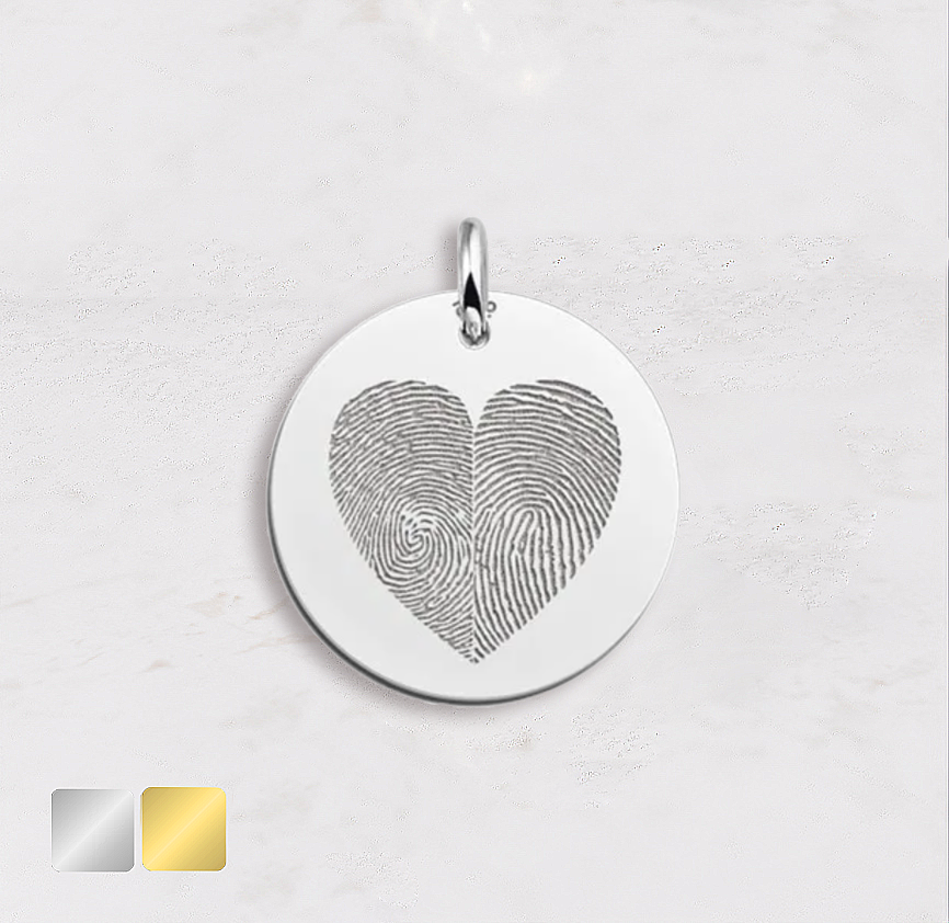 Ronde vingerafdruk platte hanger met dubbele afdruk hart