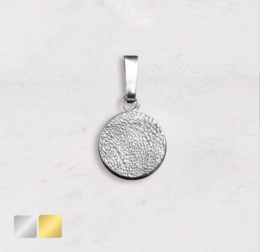 Draag de vingerafdruk van jouw geliefde dicht bij je hart met deze elegante ronde hanger. Vervaardigd uit 925 sterling zilver, met een solide dikte van 2,5 mm in zilver en 1.2 mm in goud, is deze hanger beschikbaar in verschillende formaten tussen de 11 en 20 mm – perfect afgestemd op jouw voorkeur
