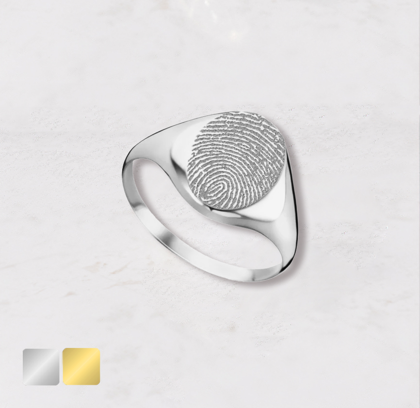 Draag een tastbare herinnering altijd bij je met deze elegante ovale zegelring. De ring wordt gepersonaliseerd met een unieke vingerafdruk – een subtiel, maar krachtig symbool van verbondenheid.